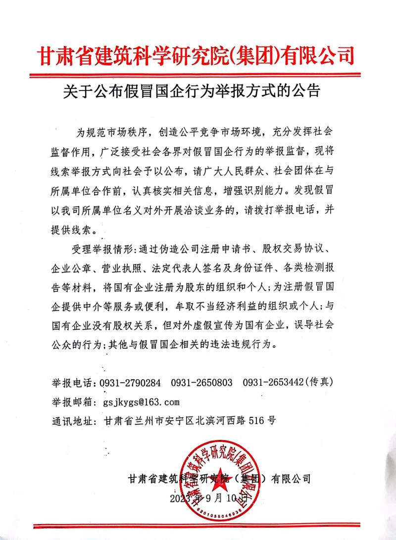 關(guān)于公布假冒國(guó)企行為舉報(bào)方式的公告