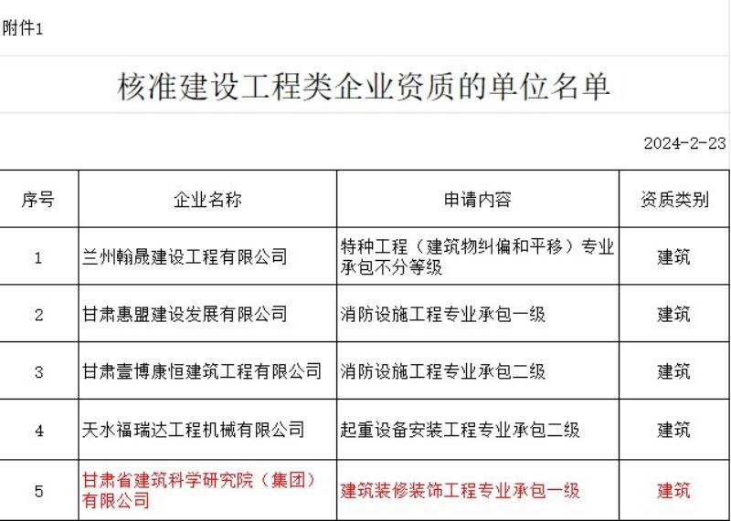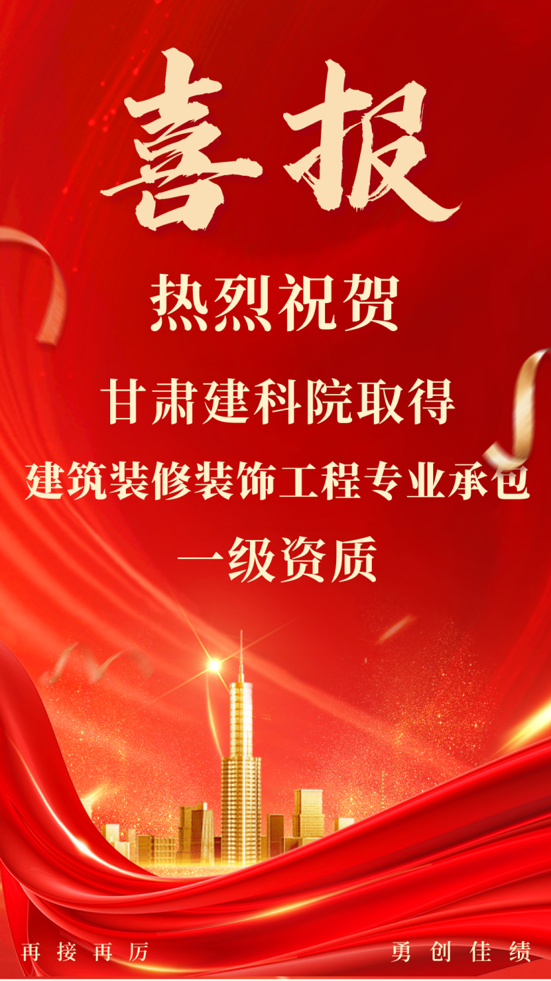【喜迎職代會 奮進新征程】甘肅省建筑科學研究院(集團)有限公司取得建筑裝修裝飾工程專業(yè)承包一級資質(zhì)