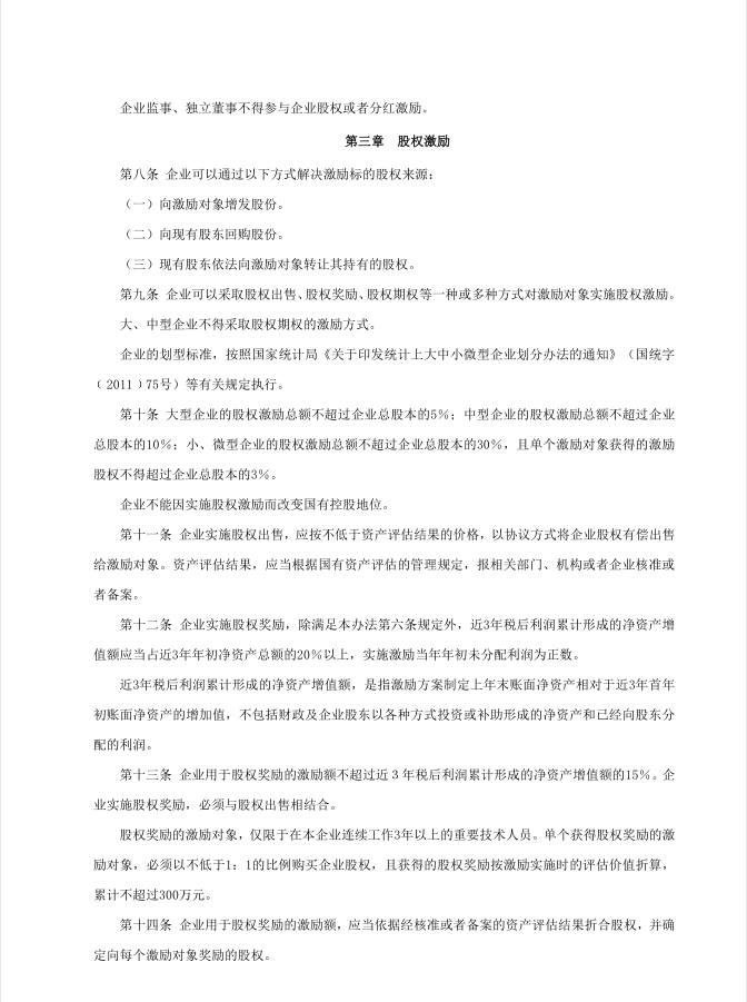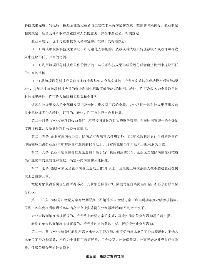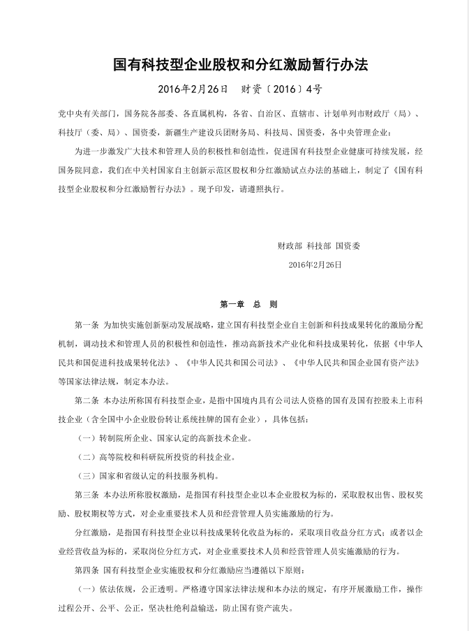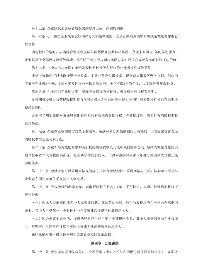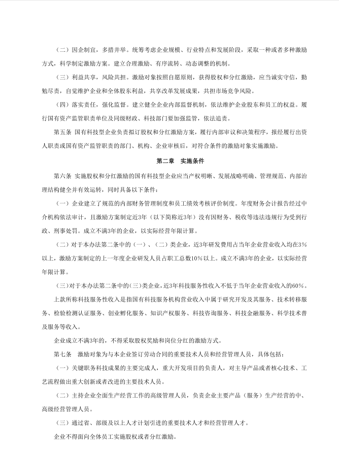 國(guó)有科技型企業(yè)股權(quán)和分紅激勵(lì)暫行辦法