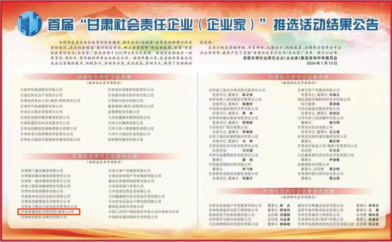 日前,由甘肅日?qǐng)?bào)社、甘肅省人民政府國有資產(chǎn)監(jiān)督管理委員會(huì)、甘肅省工商業(yè)聯(lián)合會(huì)、甘肅省社會(huì)科學(xué)院聯(lián)合舉辦的“首屆甘肅社會(huì)責(zé)任企業(yè)(企業(yè)家)推選活動(dòng)”已順利結(jié)束,甘肅省建筑科學(xué)研究院(集團(tuán))有限公司榮獲“甘肅社會(huì)責(zé)任企業(yè)提名”。