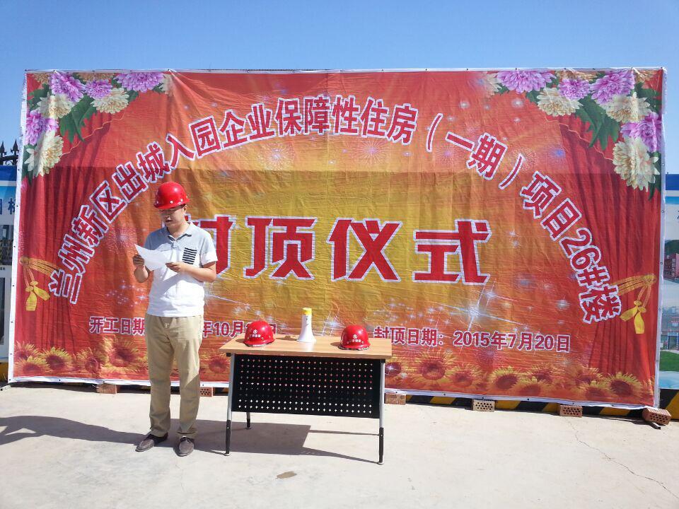 在建設(shè)單位、施工單位、監(jiān)理單位各方共同努力下,由科研院華蘭監(jiān)理公司承擔(dān)監(jiān)理的“甘肅建投蘭州新區(qū)保障性住房一期工程”項目26#樓主體結(jié)構(gòu)于2015年7月20日順利封頂。