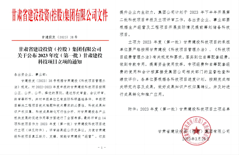 近日,由甘肅建科院科技研發(fā)中心申報并實施的“裝配式建筑質(zhì)量檢測關(guān)鍵技術(shù)體系研究”“雙碳政策下建筑建造階段碳排放及減排對策研究”2項科研課題在甘肅建投成功立項,獲得科研經(jīng)費255萬元。