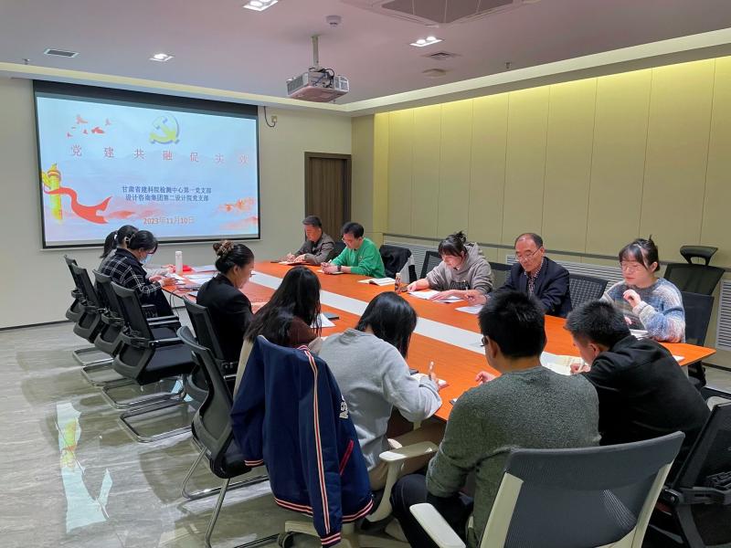 為深入開展學(xué)習(xí)貫徹習(xí)近平新時(shí)代中國特色社會主義思想主題教育,進(jìn)一步推動黨員干部深刻領(lǐng)會“三抓三促”行動重要意義,提升黨建工作水平,加強(qiáng)黨建和生產(chǎn)經(jīng)營融入融通融合,實(shí)現(xiàn)黨組織優(yōu)勢互補(bǔ),11月10日下午,甘肅建科院檢測中心第一黨支部與甘肅省建設(shè)設(shè)計(jì)咨詢集團(tuán)有限公司第二設(shè)計(jì)院黨支部開展“黨建共融促實(shí)效”黨建聯(lián)學(xué)聯(lián)建主題黨日活動。雙方單位黨員代表、業(yè)務(wù)骨干代表共同參加了活動。