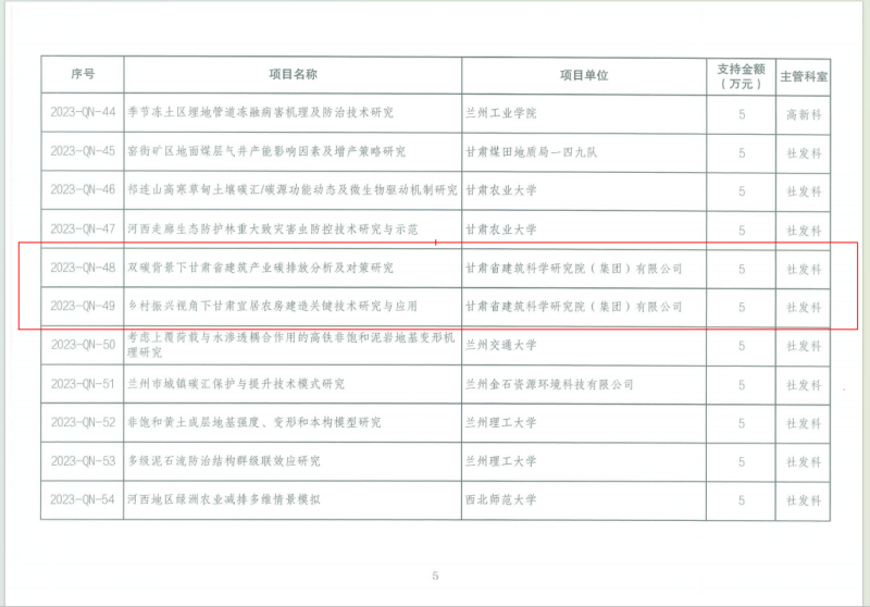近日,蘭州市2023年青年科技人才創(chuàng)新項(xiàng)目名單公布,甘肅建科院申報(bào)的《雙碳背景下甘肅省建筑產(chǎn)業(yè)碳排放分析及對(duì)策研究》《鄉(xiāng)村振興視角下甘肅宜居農(nóng)房建造關(guān)鍵技術(shù)研究與應(yīng)用》2項(xiàng)目獲批立項(xiàng),共獲批經(jīng)費(fèi)10萬元。