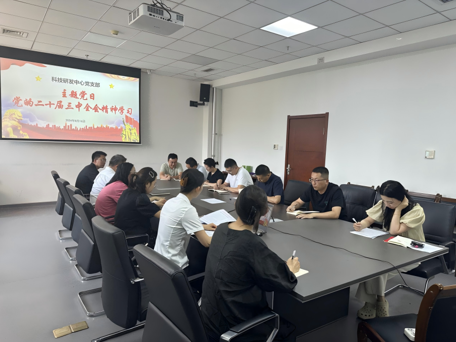 近日,科技研發(fā)中心黨支部組織開展“學(xué)習(xí)貫徹黨的二十屆三中全會精神 推動創(chuàng)新體制機制深化改革”主題黨日活動,傳達學(xué)習(xí)了黨的二十屆三中全會精神,全體黨員、入黨積極分子參加了學(xué)習(xí)。