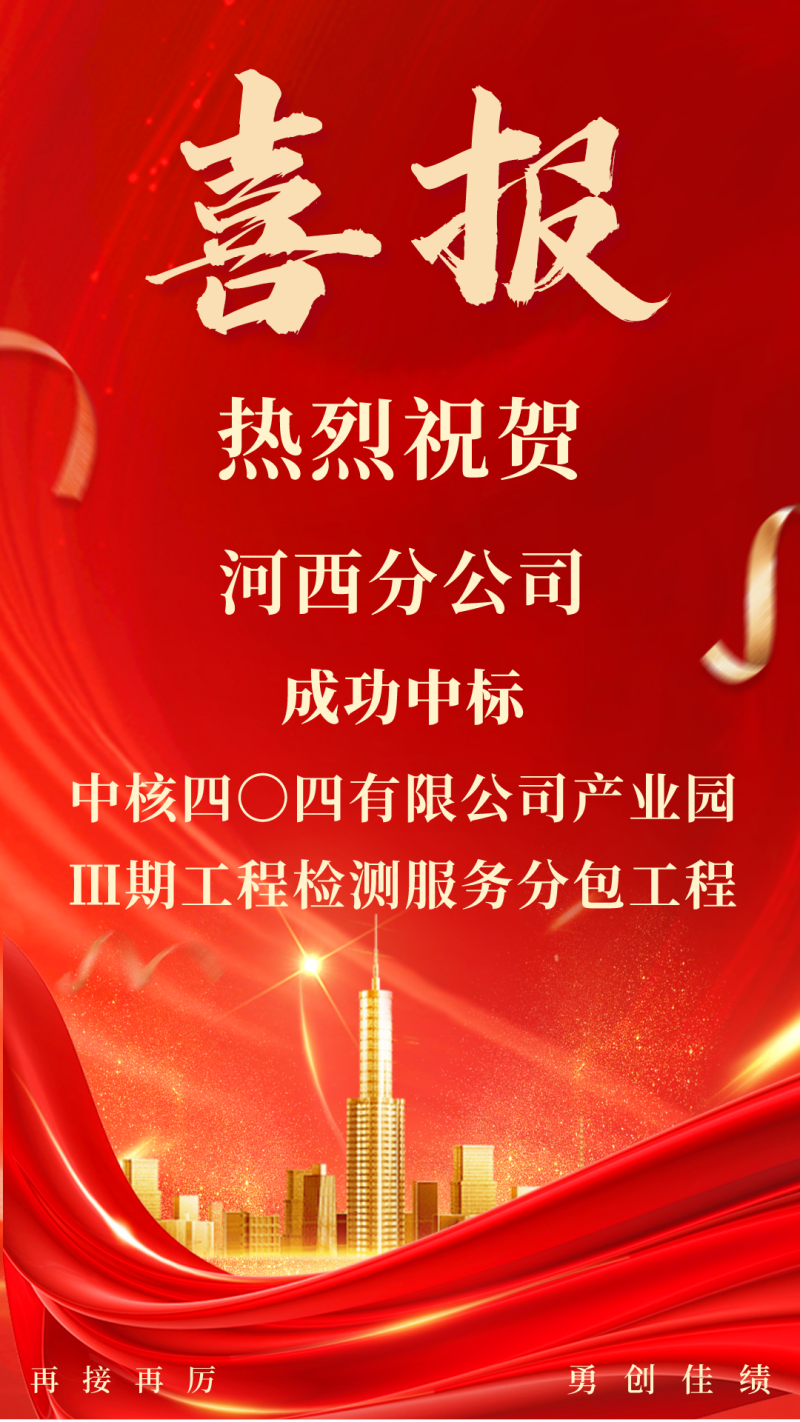 2月27日,河西分公司成功中標(biāo)中核華辰建筑工程有限公司承建的中核四0四有限公司產(chǎn)業(yè)園Ⅲ期工程檢測(cè)服務(wù)分包工程。