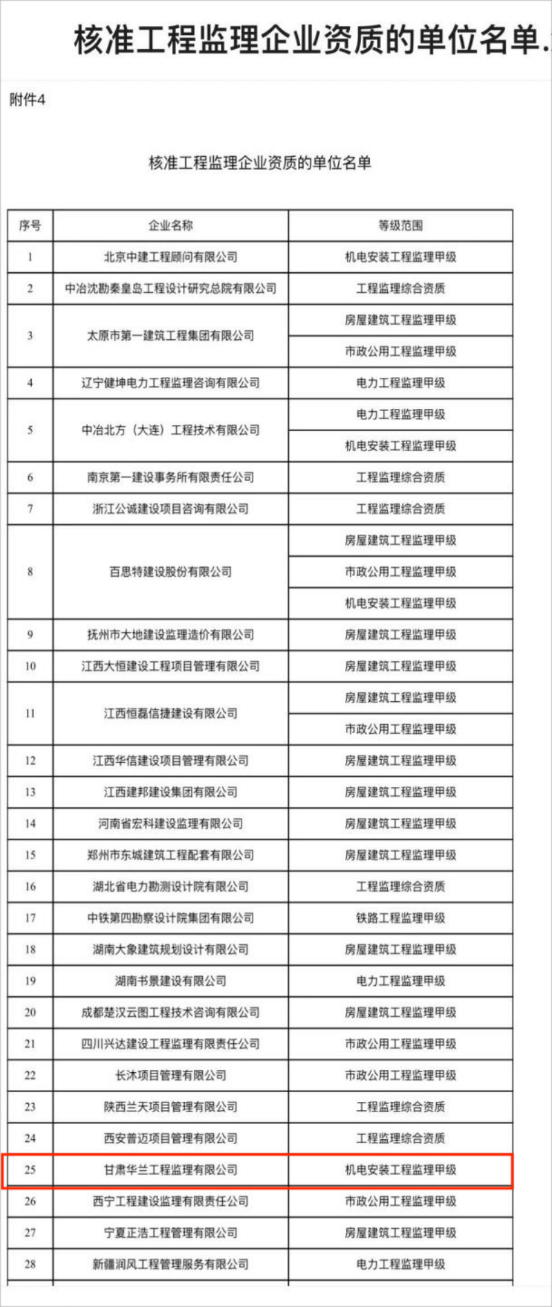2023年新年伊始,甘肅建科院全資子公司華蘭工程監(jiān)理有限公司近日成功取得住房和城鄉(xiāng)建設部頒發(fā)的機電安裝工程監(jiān)理甲級資質(zhì)。