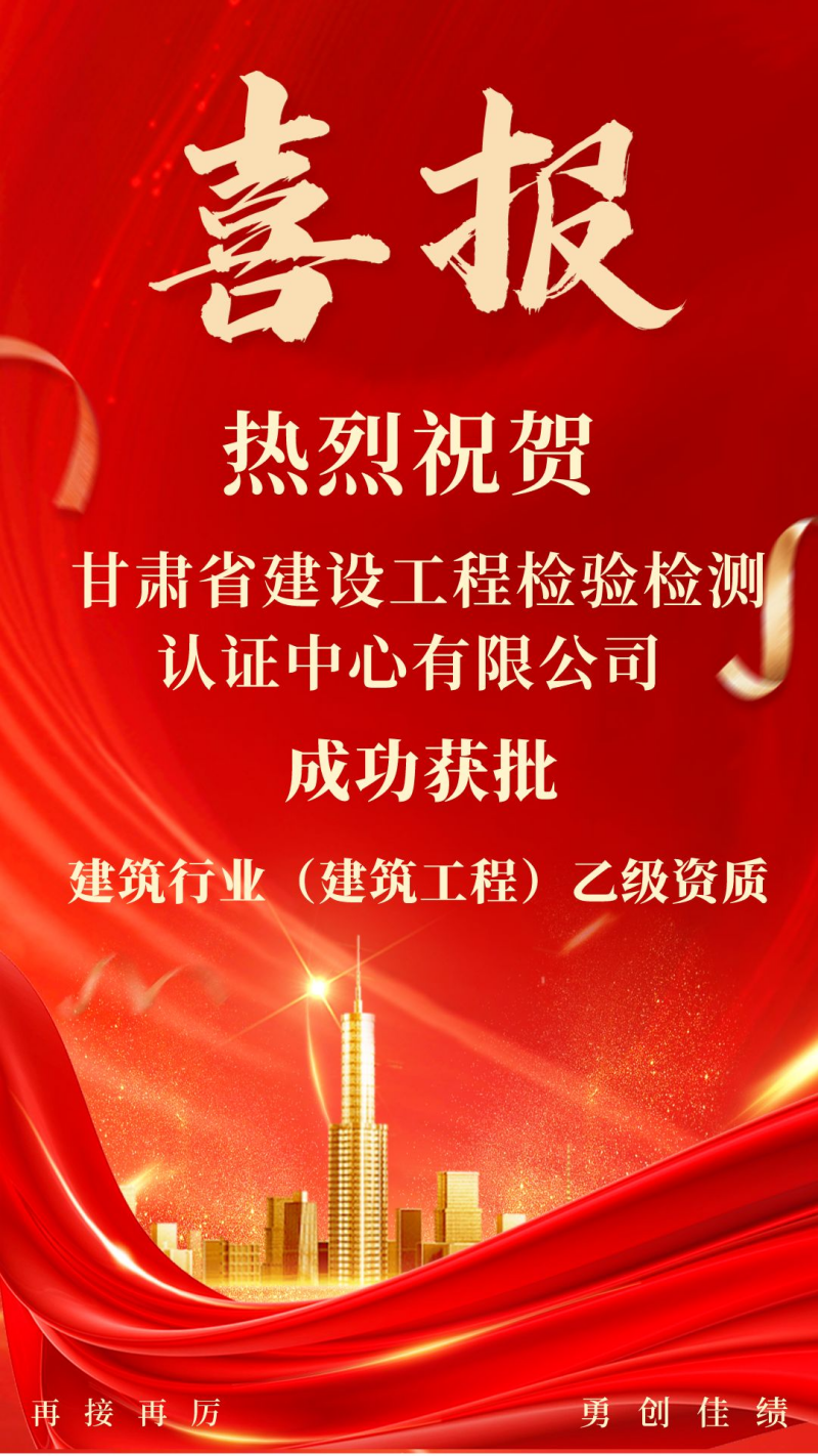 甘肅省建設(shè)工程檢驗(yàn)檢測(cè)認(rèn)證中心成功獲批建筑行業(yè)(建筑工程)設(shè)計(jì)乙級(jí)資質(zhì)