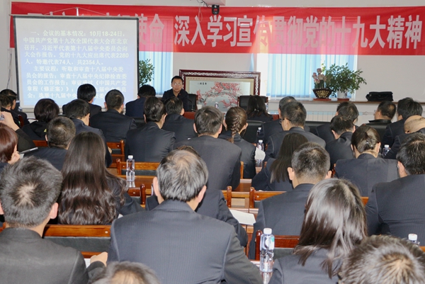 曹教授從十九大報告主題、十九大報告主要的兩大板塊十三點內(nèi)容、十九大報告的重要論斷和主要亮點幾個層面上深入淺出,點面結(jié)合的為我們解讀了黨的十九大精神,讓全體參會人員在思想層面上得到了很大的提高,為我們今后的工作筑牢了思想基礎(chǔ)。黨的十九大于2017年10月18日至24日在首都北京召開。這次大會,是在全面建成小康社會決勝階段、中國特色社會主義進入新時代的關(guān)鍵時期召開的一次十分重要的大會,是在新的歷史起點上開啟黨和國家事業(yè)新征程的一次大會,是一次不忘初心、牢記使命、高舉旗幟、團結(jié)奮進的大會。認真學(xué)習(xí)宣傳貫徹黨的十九大精神,是我院廣大黨員干部的首要政治任務(wù),是當(dāng)前和今后一個時期工作的主題。