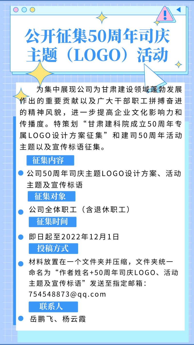 征集令|@所有人:甘肅建科院50周年司慶主題LOGO征集活動(dòng)開(kāi)始啦!