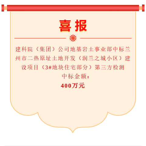 地基巖土事業(yè)部中標(biāo)蘭州市二熱原址土地開發(fā)(潤蘭之城小區(qū))建設(shè)項目(3#地塊住宅部分)第三方檢測