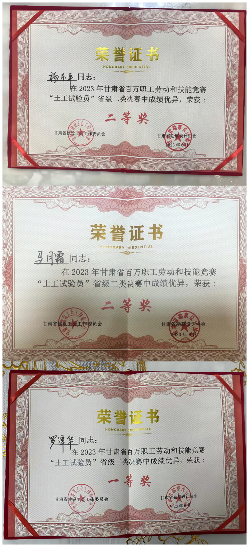 6月20日,由省建設(shè)工會、省勘察設(shè)計協(xié)會主辦的甘肅省百萬職工勞動和技能競賽“土工試驗員”省級二類決賽在甘肅中建市政工程勘察設(shè)計研究院有限公司拉開帷幕。經(jīng)過一天的激烈角逐,甘肅建科院選手羅澤華在全省65名選手中脫穎而出,榮獲個人一等獎,楊東平和馬月霜兩名選手榮獲個人二等獎。
