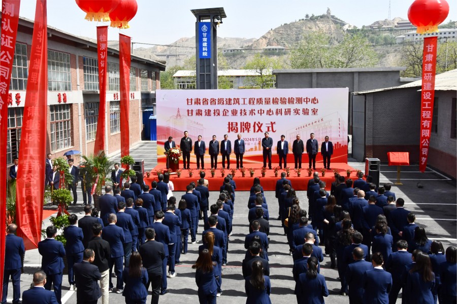 甘肅建投副總經(jīng)理、甘肅建投企業(yè)技術(shù)中心主任胡繼河與甘肅建科院黨委副書記、總經(jīng)理史智偉,蘭州市市場監(jiān)督管理局黨組成員、副局長陳賢普與甘肅建科院總工程師、認(rèn)證公司總經(jīng)理王公勝共同為“甘肅省省級建筑工程質(zhì)量檢驗檢測中心”“甘肅建投企業(yè)技術(shù)中心科研實驗室”揭牌。
