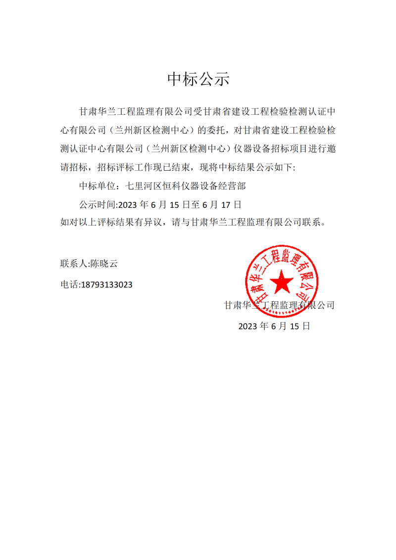 中標(biāo)結(jié)果公示