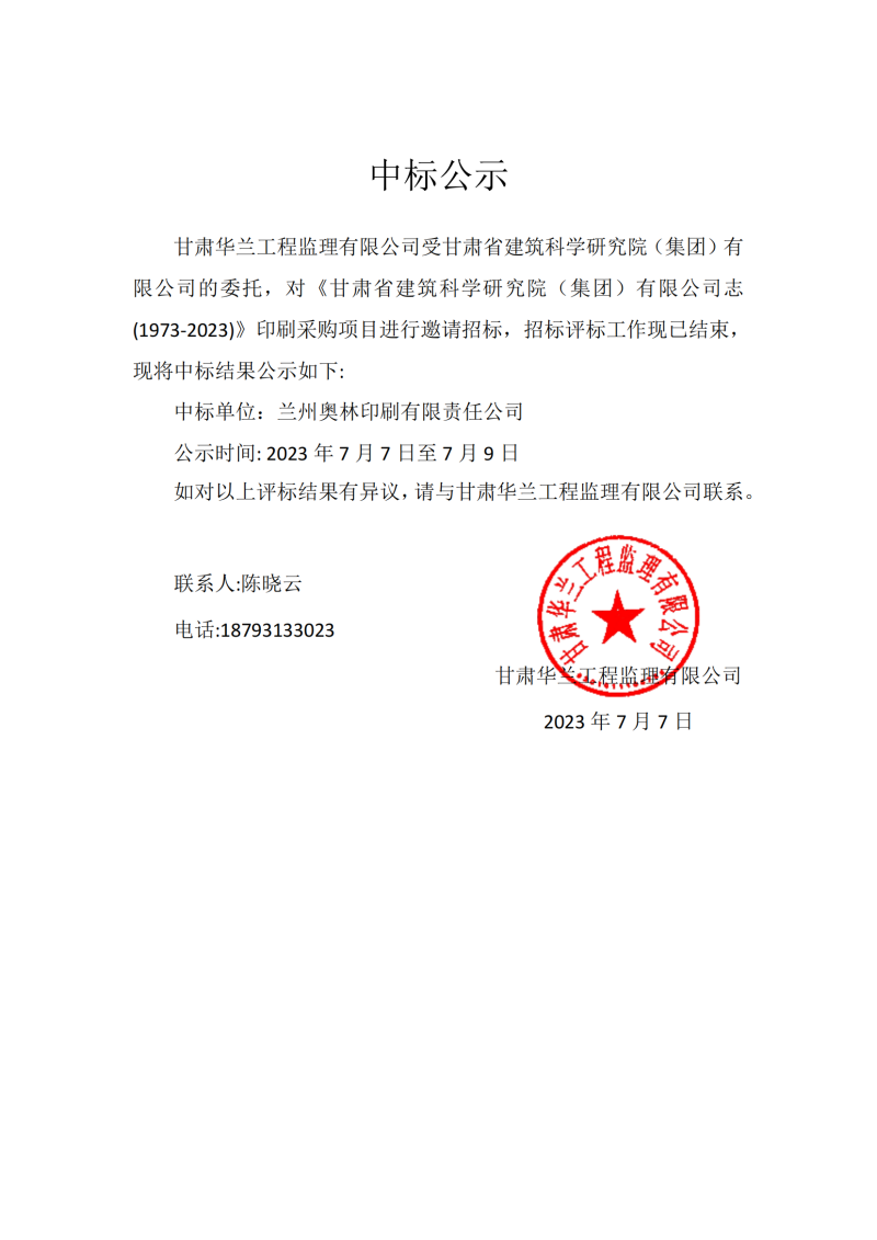中標(biāo)公示