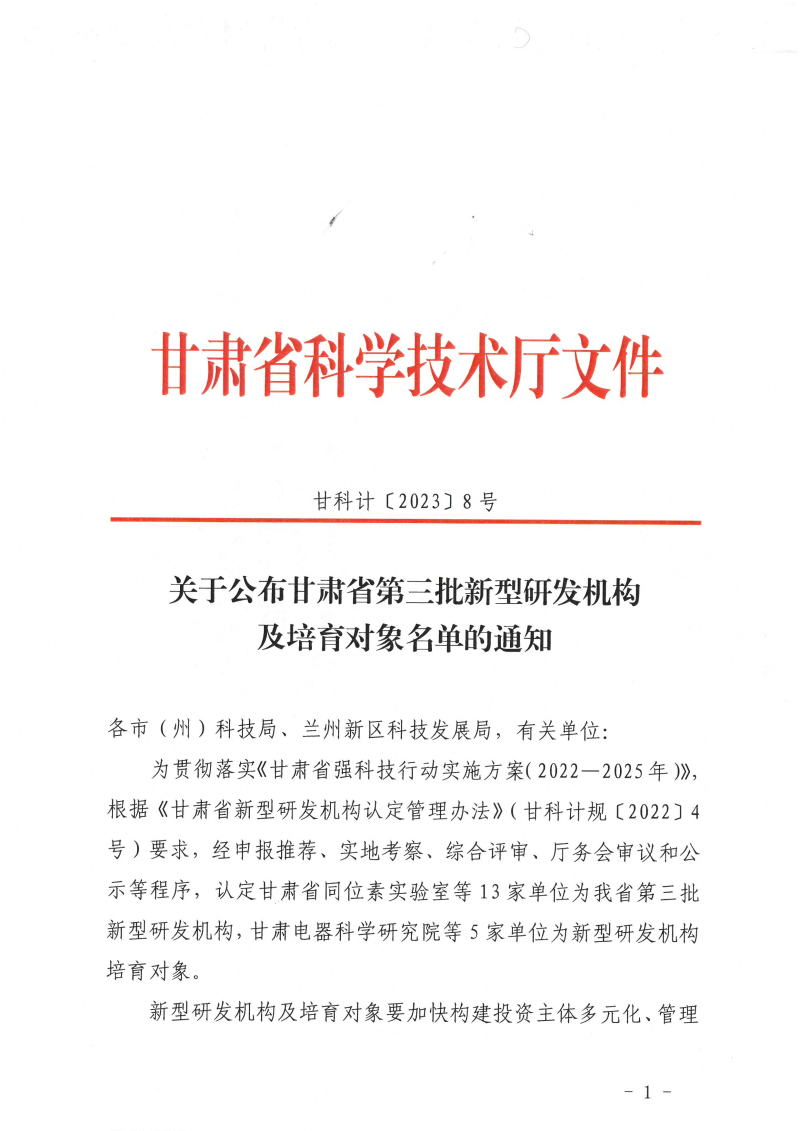 據(jù)了解,省級“新型研發(fā)機構(gòu)”是指在甘肅省內(nèi)注冊并運營,聚焦科技創(chuàng)新需求,主要從事科學研究、技術(shù)創(chuàng)新和研發(fā)服務(wù),投資主體多元化、管理制度現(xiàn)代化、運行機制市場化、用人機制靈活的獨立法人機構(gòu)。