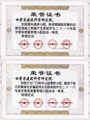 甘肅省建筑科學(xué)研究院在甘肅省第三十六次質(zhì)量管理小組年會(huì)暨成果發(fā)表會(huì)上再傳喜訊,科研院共申報(bào)八個(gè)小組成果,其中五項(xiàng)獲得省質(zhì)量管理小組一等獎(jiǎng),分別為《提高重型動(dòng)力觸探試驗(yàn)準(zhǔn)確率》、《提高綠色建筑評價(jià)條文達(dá)標(biāo)率》、《提高干掛石材幕墻允許偏差項(xiàng)目合格率》、《降低噴錨面層橫向拉筋處混凝土裂縫產(chǎn)生率》、《提高錨桿靜壓樁施工質(zhì)量》;另外三項(xiàng)獲得省質(zhì)量管理小組二等獎(jiǎng),分別是《提高鋁合金窗框安裝一次合格率》、《教學(xué)樓墻體加固內(nèi)墻抹灰面質(zhì)量控制》和《降低工程設(shè)計(jì)建筑專業(yè)與相關(guān)專業(yè)銜接環(huán)節(jié)差錯(cuò)率》。