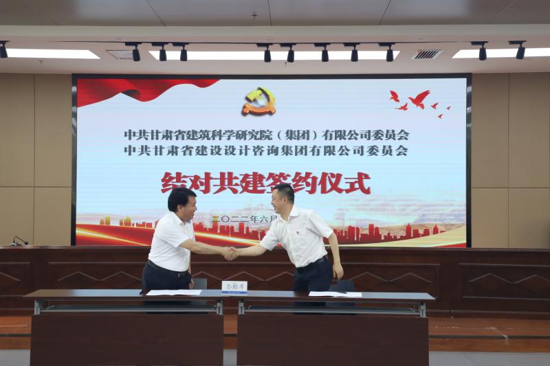 為認(rèn)真貫徹落實(shí)甘肅建投第一次黨代會(huì)精神,著力構(gòu)建強(qiáng)強(qiáng)聯(lián)合、優(yōu)勢(shì)互補(bǔ)、合作共贏的黨建工作新格局,以高質(zhì)量黨建引領(lǐng)保障企業(yè)高質(zhì)量發(fā)展,6月29日下午,建科院(集團(tuán))公司黨委與設(shè)計(jì)咨詢公司黨委在建研大廈12樓舉行結(jié)對(duì)共建簽約儀式。雙方單位領(lǐng)導(dǎo)班子成員,黨支部書記和相關(guān)部門負(fù)責(zé)人40余人出席會(huì)議。會(huì)議由建科院(集團(tuán))公司黨委副書記、總經(jīng)理史智偉主持。