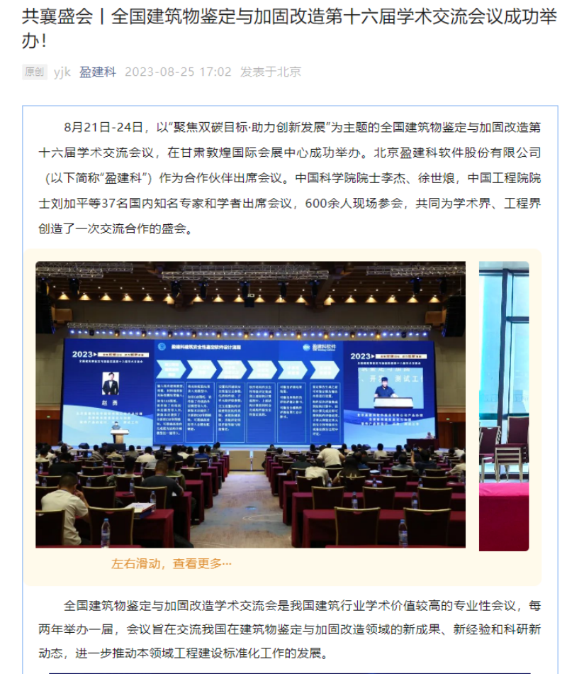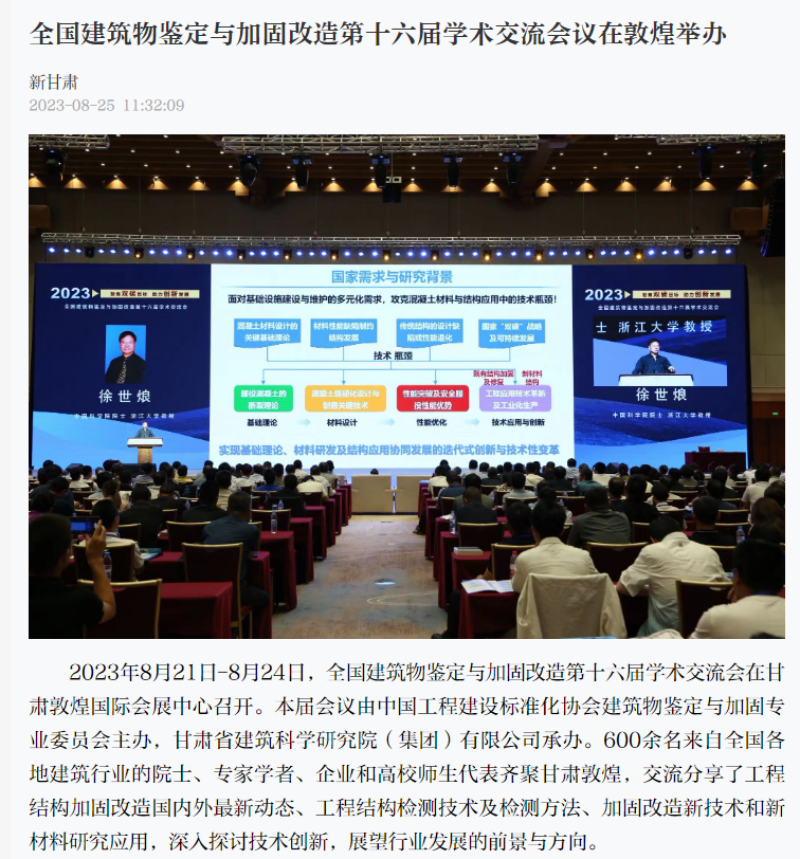 8月21日-8月24日,全國建筑物鑒定與加固改造第十六屆學(xué)術(shù)交流會在甘肅敦煌召開,由掌上敦煌、視聽甘肅、甘肅建科院視頻號平臺對會議現(xiàn)場進(jìn)行直播,多家主流媒體紛紛聚焦報(bào)道。