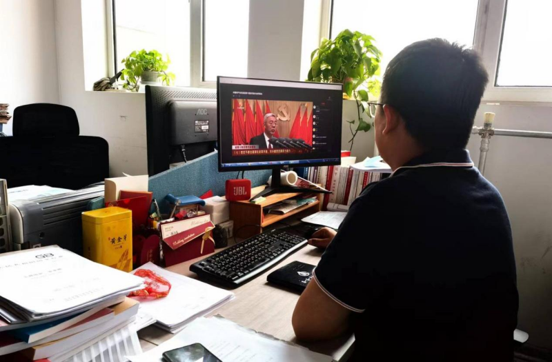 5月27日,檢測中心第二黨支部以黨小組為單位組織黨員和業(yè)務(wù)骨干觀看了省十四次黨代會直播。5月30日大會結(jié)束后,于6月1日至6月10日以甘肅黨建為自學(xué)平臺,分批次組織黨小組會進(jìn)行集中學(xué)習(xí)研討,回顧全省過去5年各項事業(yè)取得的歷史性進(jìn)步和成就。在辦公區(qū)域懸掛宣傳標(biāo)語,展望未來5年的美好景象,樹立發(fā)展信心和開拓進(jìn)取的決心意志。