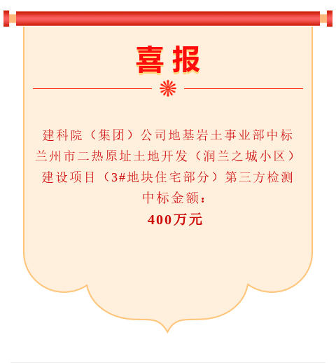 甘肅建科院地基巖土事業(yè)部中標(biāo)蘭州市二熱原址土地開發(fā)(潤蘭之城小區(qū))建設(shè)項(xiàng)目(3#地塊住宅部分)第三方檢測