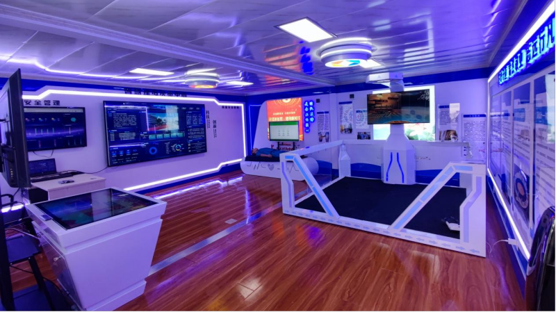 展廳是旅客過夜用房項目的重要組成部分,具有多項功能。決策中心顯示大屏實時展示工地的各項數(shù)據(jù),包括施工進度、安全指標、環(huán)境監(jiān)測等,為管理人員提供決策依據(jù)。安全管理顯示大屏展示工地的安全情況,包括監(jiān)控畫面和報警信息,以保障工人的安全。現(xiàn)場急救體驗系統(tǒng)的安裝提高了工人的風(fēng)險意識和應(yīng)急處置能力。此外,VR安全體驗設(shè)備和黨建互動展廳設(shè)備的安裝也為管理人員及工人提供了一系列安全模擬體驗和黨務(wù)知識傳遞。