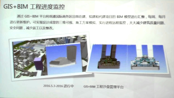 智慧前灘的管理運(yùn)營(yíng)主要借助兩大平臺(tái):綜合管理平臺(tái)、公眾服務(wù)平臺(tái)。綜合管理平臺(tái)使用BIM技術(shù)制作整個(gè)前灘國(guó)際商務(wù)區(qū)三維模型,包含道路、地塊、建筑以及市政設(shè)施。BIM應(yīng)用于智能建筑物業(yè)及設(shè)施管理(BIM+FM)已成趨勢(shì)。另外,通過(guò)BIM+GIS將前灘商務(wù)區(qū)目前在建、擬建和代建項(xiàng)目的BIM模型進(jìn)行匯總、每周、每月進(jìn)行更新維護(hù)??蓪?shí)現(xiàn)設(shè)計(jì)成果的三維可視、施工方案模擬、實(shí)行進(jìn)程遠(yuǎn)程監(jiān)控,大大減少建筑質(zhì)量問(wèn)題、安全問(wèn)題,減少返工以及整改。