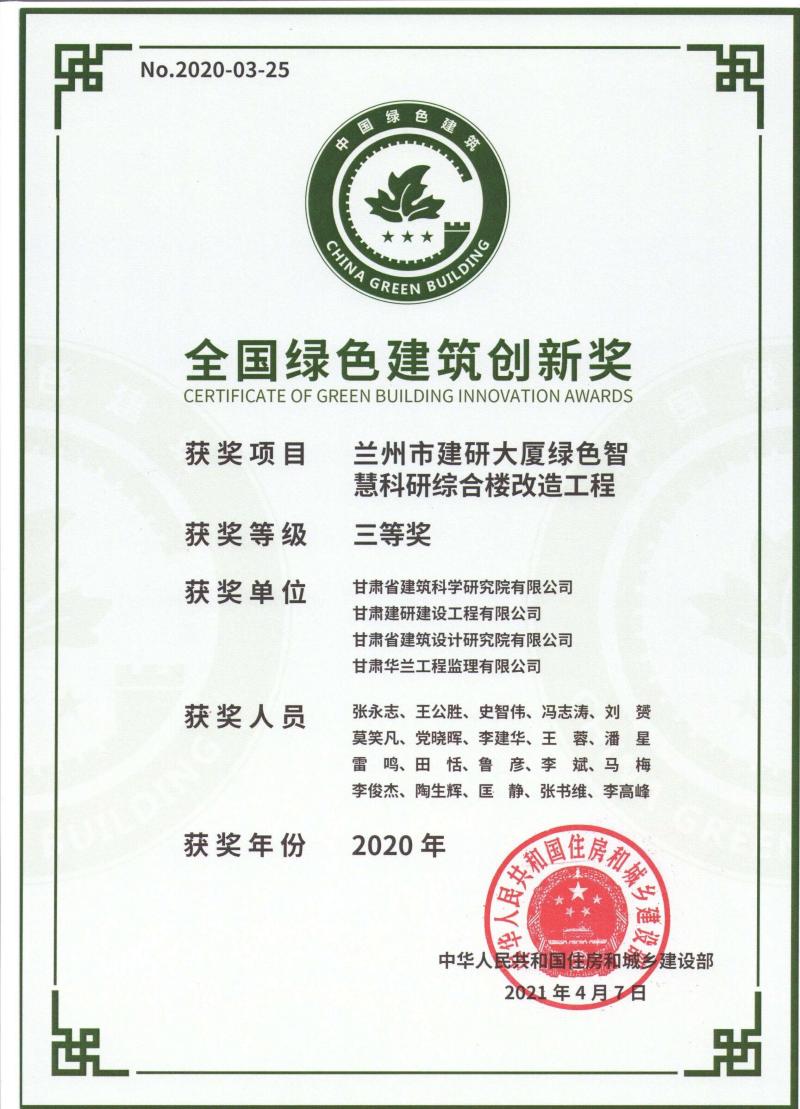 公司以科技創(chuàng)新為引領,三年來,以甘肅建科院為依托成立了“中國工程建設標準化協(xié)會建筑物鑒定與加固專業(yè)委員會甘肅專家委員會”和“甘肅省建筑修復更新改造專業(yè)委員會”;獲批甘肅省工信廳行業(yè)技術(shù)中心等科研平臺;科研立項課題共28項,其中國家級項目2項。專利授權(quán)量累計200余件,起草主編國家、行業(yè)及地方標準圖集120余部。先后榮獲全國綠色建筑創(chuàng)新獎、全國用戶滿意標桿企業(yè)、第七屆甘肅省政府質(zhì)量獎提名獎以及“甘肅十佳設計研究院”等百余項國家級、省部級等各類榮譽稱號,綜合實力和社會影響力持續(xù)提升。