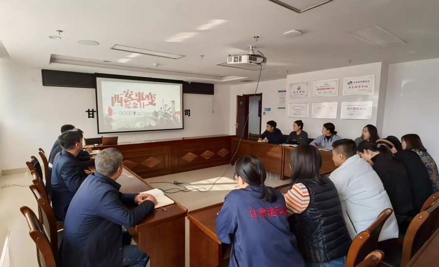 2024年12月12日,甘肅建科院監(jiān)理公司黨支部通過(guò)線上線下共同觀看西安事變歷史紀(jì)錄片的方式,開(kāi)展以“銘記歷史、團(tuán)結(jié)奮斗”為主題的主題黨日活動(dòng),重溫“西安事變”這一重大歷史事件,監(jiān)理公司黨支部全體黨員參加此次活動(dòng)。