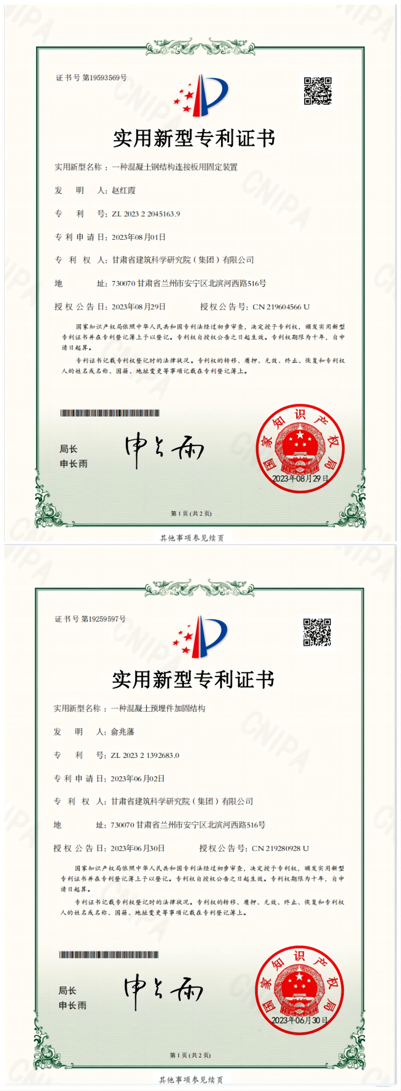 近日,巖土技術(shù)中心“一種混凝土鋼結(jié)構(gòu)連接板用固定裝置”“一種混凝土預(yù)埋件加固結(jié)構(gòu)”獲實(shí)用新型專(zhuān)利授權(quán)。